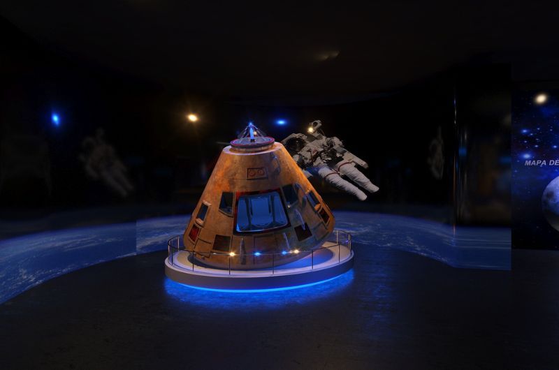 Atração turística com experiências imersivas, games, cinema, simulador, diversos itens originais da NASA e muito mais.