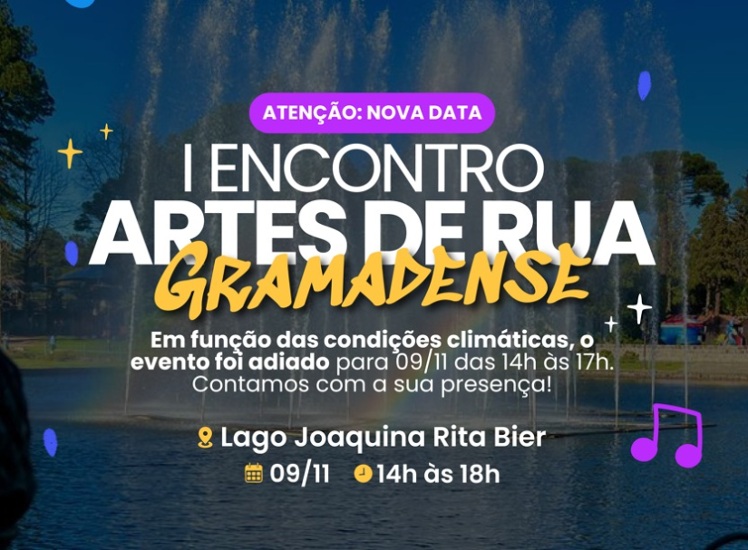 Neste domingo (09), das 14h às 18h, o Lago Joaquina Rita Bier receberá o 1º Encontro de Artes de Rua Gramadense, com participação da Feira Criativa Joaquina. A ação é promovida pela Associação dos Artistas de Rua de Gramado, com apoio da Secretaria da Cultura, e tem como objetivo valorizar a produção artística local, além de ampliar o acesso da comunidade à arte em espaços públicos.