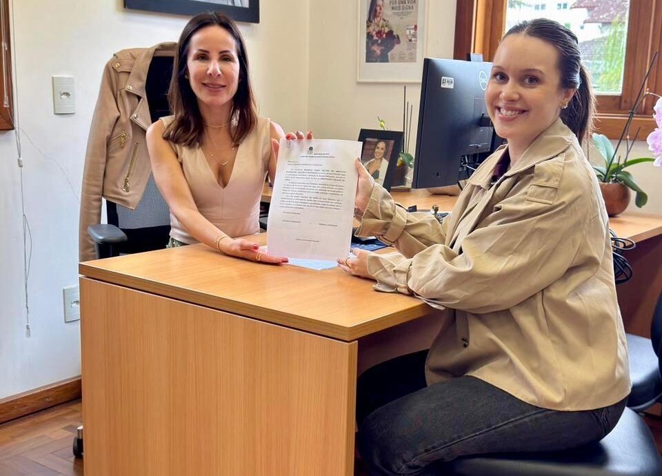 A vereadora Grazi realizou a entrega de uma emenda parlamentar no valor de R$ 80 mil à Casa Vitória de Canela, em ato realizado junto à juíza Simone Chalela. O recurso é fruto de uma emenda de bancada