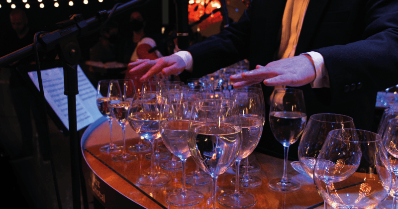 Porém, para a experiência ficar completa, é preciso um novo elemento nesta equação: a água. Ela é capaz de reduzir o espaço interno vazio dentro do copo. Menos espaço livre significa menos vibrações, alterando o som. Em outras palavras, afinando as notas deste instrumento.