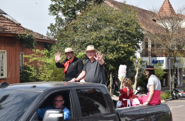 A Administração Municipal de Nova Petrópolis participou do tradicional Desfile Farroupilha, promovido pelo CTG Pousada da Serra e que integrou as festividades da Semana Farroupilha no Município. O desfile aconteceu na manhã de sábado, 20 de setembro, saindo da rua Presidente Lucena, passando pela Avenida 15 de Novembro e seguindo em direção à sede do CTG Pousada da Serra, na Linha Imperial. O prefeito de Nova Petrópolis, Daniel Carlos Michaelsen, e o vice-prefeito Municipal, Alexandre da Silva, desfilaram junto com os cavalarianos e os integrantes das invernadas do Centro de Tradições Gaúchas. Após, festejaram o Dia do Gaúcho com um almoço, também no CTG Pousada da Serra.