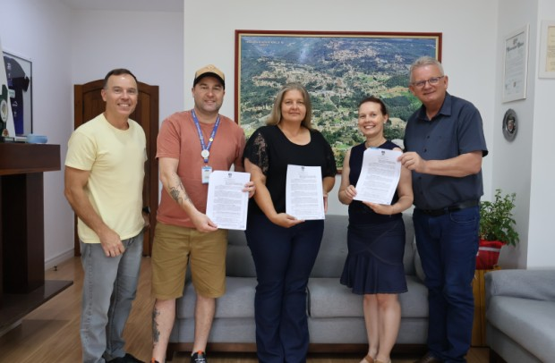 Participaram do ato de assinatura o prefeito Daniel Michaelsen; a secretária de Educação e Desporto, Caroline Andréia Kehl Matter, acompanhada pelo professor Rafael Zorzan, além da vice-presidente da APAE, Cristiane Regina Krüger, e o vice-diretor da entidade, Rafael Hoffmann.