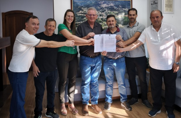 O Poder Público Municipal e a Associação de Moradores do Vale Verde firmaram termo de fomento nesta terça-feira, 31 de março, no Gabinete Oficial. O prefeito de Nova Petrópolis, Daniel Carlos Michaelsen, e o presidente da entidade, Deni Luiz Pradella Ferraz, assinaram o termo que prevê o repasse financeiro de R$ 17.500,00 pelo Executivo Municipal, valor oriundo de emendas impositivas encaminhadas pelos vereadores João Bombeiro (R$ 5 mil), Maicon Daniel Knaak (R$ 5 mil) e Plínio Rodrigues dos Santos (R$ 7.500,00).