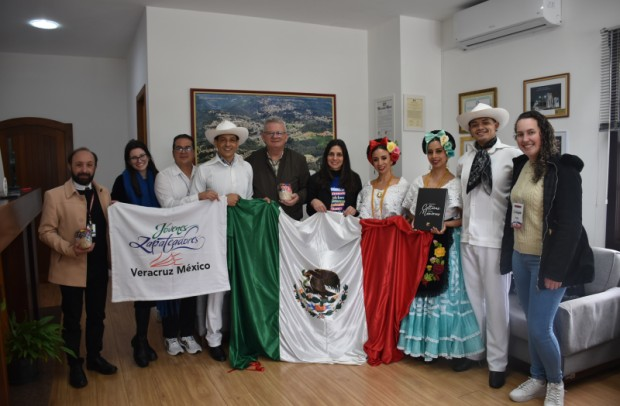 Na tarde de sexta-feira, 18 de julho, o prefeito de Nova Petrópolis, Daniel Carlos Michaelsen, recebeu, no Gabinete Oficial, a visita do grupo Compañia Artística Jóvenes Zapateadores, da cidade de Vera Cruz, no México.