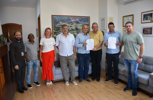 O prefeito de Nova Petrópolis, Daniel Carlos Michaelsen, e o presidente do CONSEPRO, Francisco Marques Neto, também assinaram, no dia 26 de março, no Gabinete Oficial, o Termo de Fomento nº 032/2025, que concede o repasse financeiro de R$ 5 mil pelo Executivo Municipal ao CONSEPRO, valor oriundo de Emenda Impositiva encaminhada pela ex-vereadora Kátia Regina Zummach.