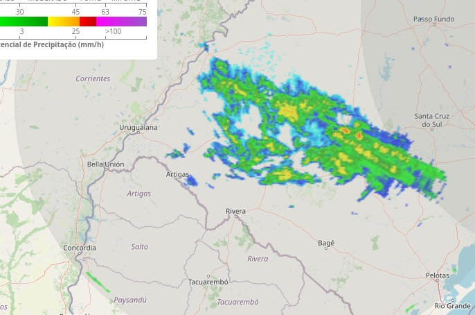 A tendência é que essas instabilidades sigam atuando sobre a Campanha, Sul e Centro e gradualmente se desloquem para o leste/nordeste no decorrer das próximas horas, acompanhadas de trovoadas e chuva pontualmente forte.