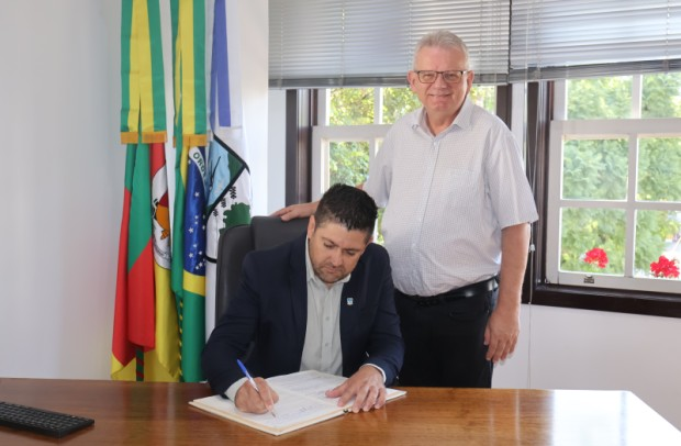 Em ato realizado na manhã de sábado, 28 de fevereiro, no Gabinete Oficial, o prefeito de Nova Petrópolis, Daniel Carlos Michaelsen, transmitiu o cargo ao vice-prefeito, Alexandre da Silva. A solenidade oficializa a alternância no Poder Executivo em razão das férias do titular, que iniciam nesta segunda-feira, dia 2 de março.