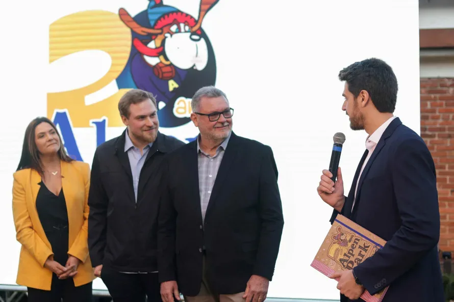 Em seu discurso, o fundador agradeceu o apoio dos amigos e da comunidade canelense. Fensterseifer enfatizou que o ano 21 do Alpen tinha começado e que o filho, Junior, assumia o comando nesta nova fase da empresa. “Até um tempo atrás, o nome que vinha quando alguém falava do Alpen era o meu. Depois, quando o Junior ingressou no parque, passou a existir a dúvida: Renato ou Renato Junior? Daqui para frente, a referência será Renato Fensterseifer Junior e, futuramente, o seu irmão, Murilo”, destaca o pai, que também recebeu uma placa pelos 20 anos do parque do amigo, Alain Baldacci, CEO do Wet’n Wild Parque Aquático, de São Paulo.