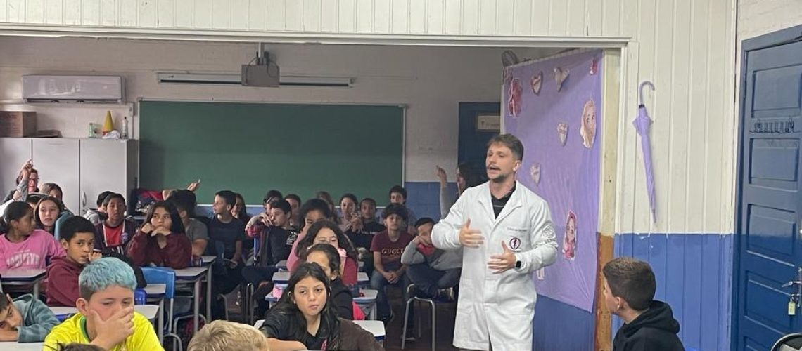Na sexta-feira (12.4), os alunos tiveram a oportunidade de receber uma palestra sobre saúde bucal, ministrada de forma voluntária pelo Dr. Eduardo Zini Port.
