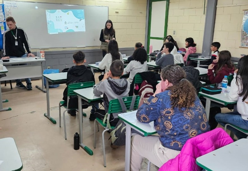 Na tarde da última terça-feira (09), os alunos do 6º ano C da EMEI Dr. Carlos Nelz participaram de uma oficina educativa sobre saneamento básico, ministrada pela Secretaria do Meio Ambiente (SMMA). A atividade integrou o Projeto Agente Mirim de Defesa Civil, iniciativa da Defesa Civil de Gramado desenvolvida em conjunto com a Universidade Feevale.