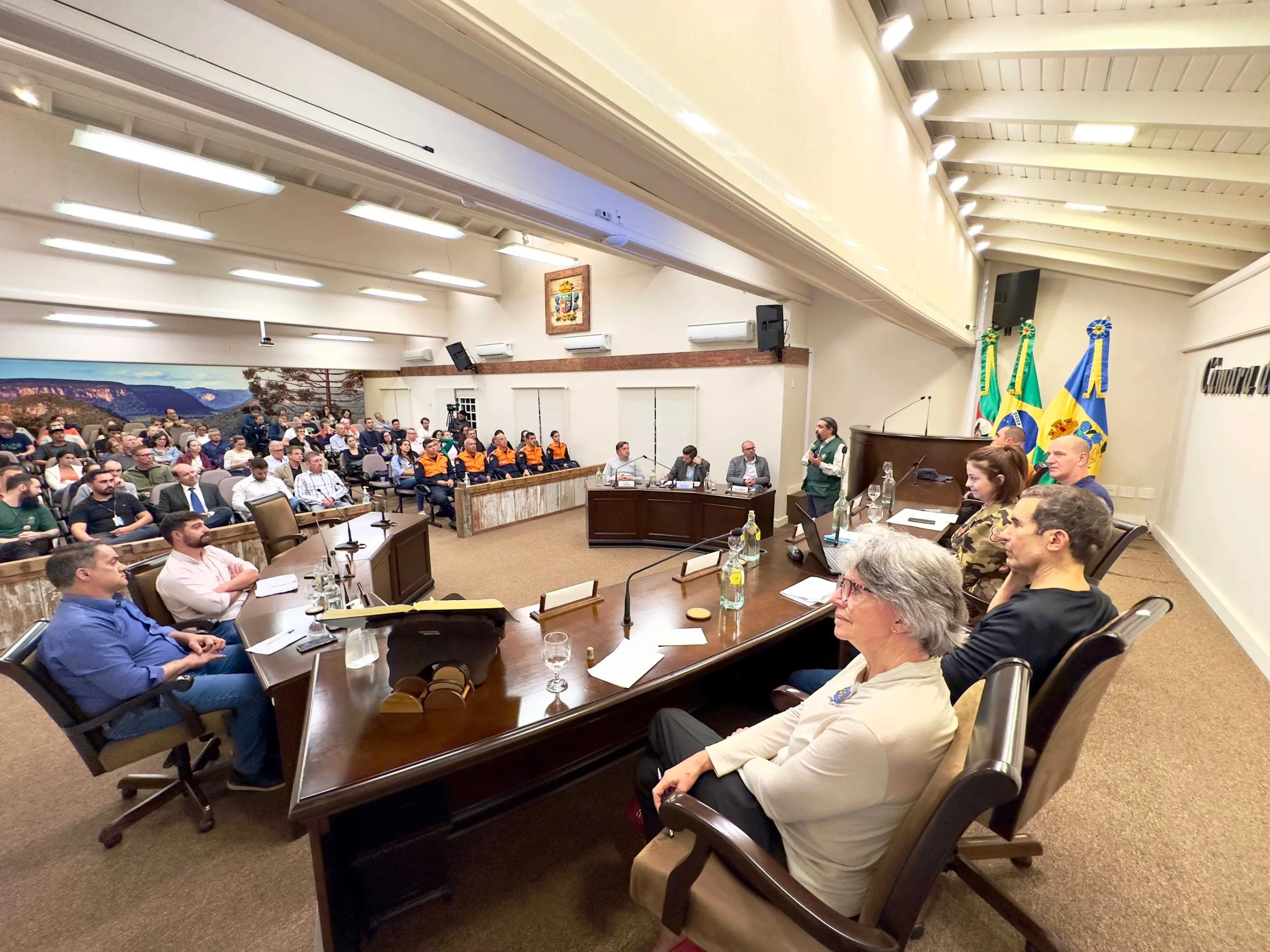O encontro foi conduzido pelo vice-presidente da Comissão, vereador Professor Daniel, em virtude da ausência do presidente da mesma, vereador Rodrigo Paim (MDB). Estiveram compondo a Mesa com ele, a secretária Municipal do Meio Ambiente, Cristiane Bandeira, que também preside o Conselho Municipal de Defesa do Meio Ambiente de Gramado (Condema), o coordenador da Defesa Civil de Gramado, Cássio Júnior de Oliveira Freitas, a presidente do Movimento Ambientalista da Região das Hortênsias (Marh), Isabel Scheid, e o designer gráfico Marcelo Caruccio, representando a comunidade que realizou o pedido no Legislativo para realização da audiência. Participaram do encontro também os vereadores Celso Fioreze (PSDB), Renan Sartori e Cícero Altreiter, do MDB, e Neri da Farmácia e Ike Koetz, do Progressistas.