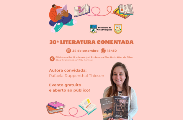 A Biblioteca Pública Municipal Professora Elsa Hofstätter da Silva, de Nova Petrópolis, realizará a 30ª edição do projeto Literatura Comentada. O evento acontece no dia 24 de setembro, quarta-feira, às 18h30, nas dependências da Biblioteca, localizada na Rua Tiradentes, nº 256, Centro. O encontro, que é gratuito e aberto ao público, terá como convidada a escritora Rafaela Ruppenthal Thiesen, autora de obras do gênero fantástico. O projeto Literatura Comentada tem como objetivo valorizar a leitura e promover o diálogo entre escritores e comunidade, aproximando o público das obras e dos processos criativos de seus autores.