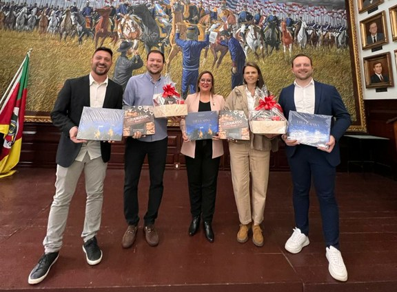 A comitiva também foi recebida pelo presidente da Câmara de Uruguaiana, Juca (Joalcei Gonçalves), e pela presidente do Festival Califórnia da Canção, Melissa Mello, que atualmente ocupa o cargo de secretária de Habitação. A agenda segue nesta quarta-feira (28), com visita à Aduana Brasileira, ponto estratégico na fronteira com a Argentina e o Chile — países de onde partem muitos turistas que visitam Gramado.