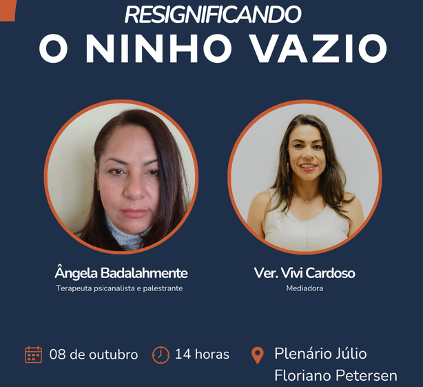 O evento será realizado no dia 8 de outubro, quarta-feira, às 14h, no plenário Júlio Floriano Petersen, e contará com a participação da terapeuta psicanalista Ângela Badalahmente. Durante o encontro, serão abordados os sintomas, causas e gatilhos da síndrome, além de estratégias para lidar com essa fase de transição — transformando o momento de dor em oportunidade de autodescoberta e fortalecimento familiar.