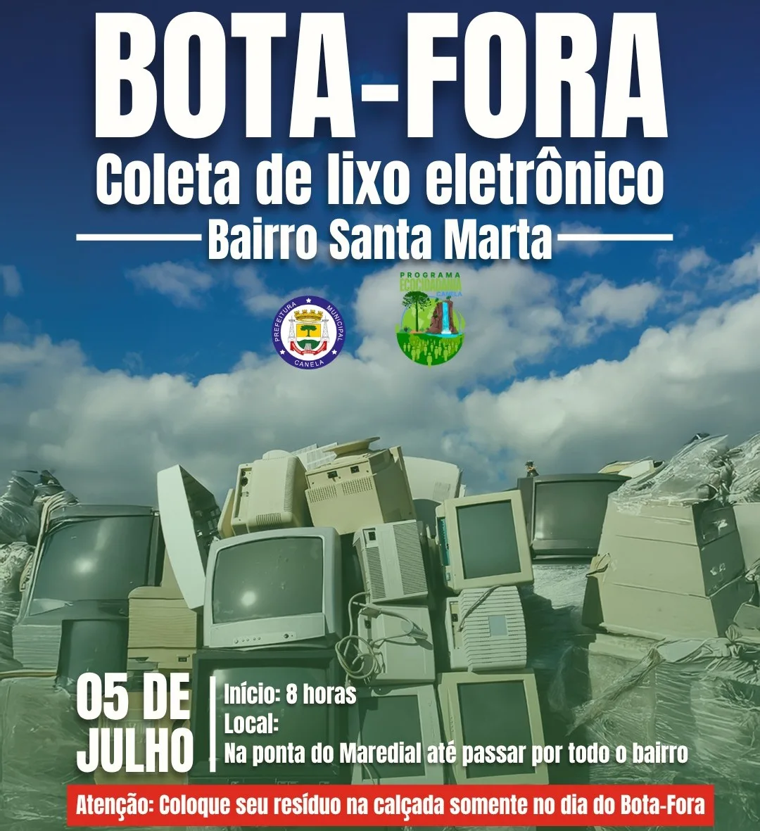 A partir do projeto-piloto socioambiental que está sendo desenvolvido no bairro Santa Marta, tendo o programa Ecocidadania da Prefeitura de Canela como referência, serão realizadas duas ações de bota-fora nesta localidade durante o mês. No sábado, dia 5, moradores das ruas da Igreja, da Alfredo Fritz e Primeiro de Janeiro poderão descartar lixo eletrônico. Em seguida, no dia 19, essas ruas também serão beneficiadas com o bota-fora de resíduos volumosos, como móveis e eletrodomésticos. Nestas duas datas, a Secretaria de Obras e Limpeza Urbana iniciará o recolhimento às 8 horas, começando pelo Loteamento Maredial.