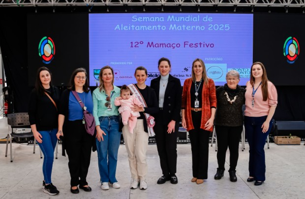 A Prefeitura de Nova Petrópolis, por meio da Secretaria de Saúde e Assistência Social e do Grupo de Apoio ao Aleitamento Materno (GAAMA), promoveu, no dia 1º de agosto, o 12º Mamaço Festivo, em alusão à Semana Mundial da Amamentação (SMAM) e ao Agosto Dourado. O evento ocorreu no palco da Rua Coberta de Nova Petrópolis, junto com a programação do 52º Festival Internacional de Folclore, e contou com a participação de mais de 20 mamães, além de servidores municipais, profissionais da Saúde e comunidade em geral.