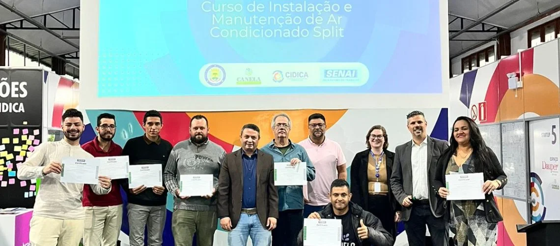 Na última capacitação do ano em parceria com o SENAI, o Centro Integrado de Desenvolvimento e Inovação de Canela- CIDICA, formou cerca de 20 alunos no curso de Instalação e Manutenção de Ar Condicionado Split, formação realizada pelo SENAI na Unidade Móvel que esteve em frente ao CIDICA durante o mês de novembro e início de dezembro.