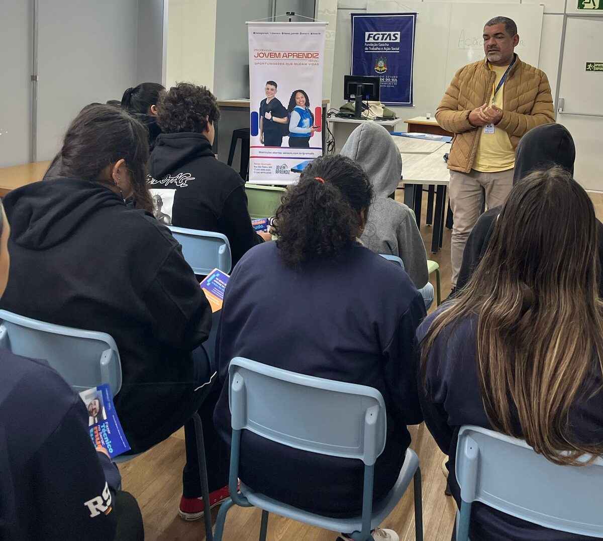 Na oportunidade, os jovens do 1º ano do Ensino Médio da Escola Estadual Danton Corrêa da Silva, puderam conhecer melhor o Programa Jovem Aprendiz e tirar suas dúvidas, através de uma apresentação feita pelos técnicos do Senac.