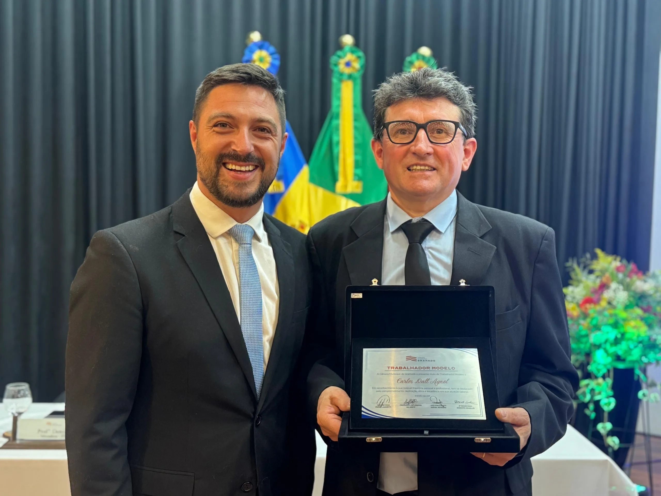 Emocionado, Carlos agradeceu a homenagem: “É uma emoção gigantesca estar aqui hoje recebendo este título tão importante, que reafirma meu compromisso profissional. A Lustro faz parte da minha vida e da minha família — foi lá que construí amizades e conquistei tudo o que tenho. Agradeço pelas oportunidades, pelo carinho da empresa, pela indicação do Sindicato e pela aprovação dos vereadores. Obrigado a todos.”