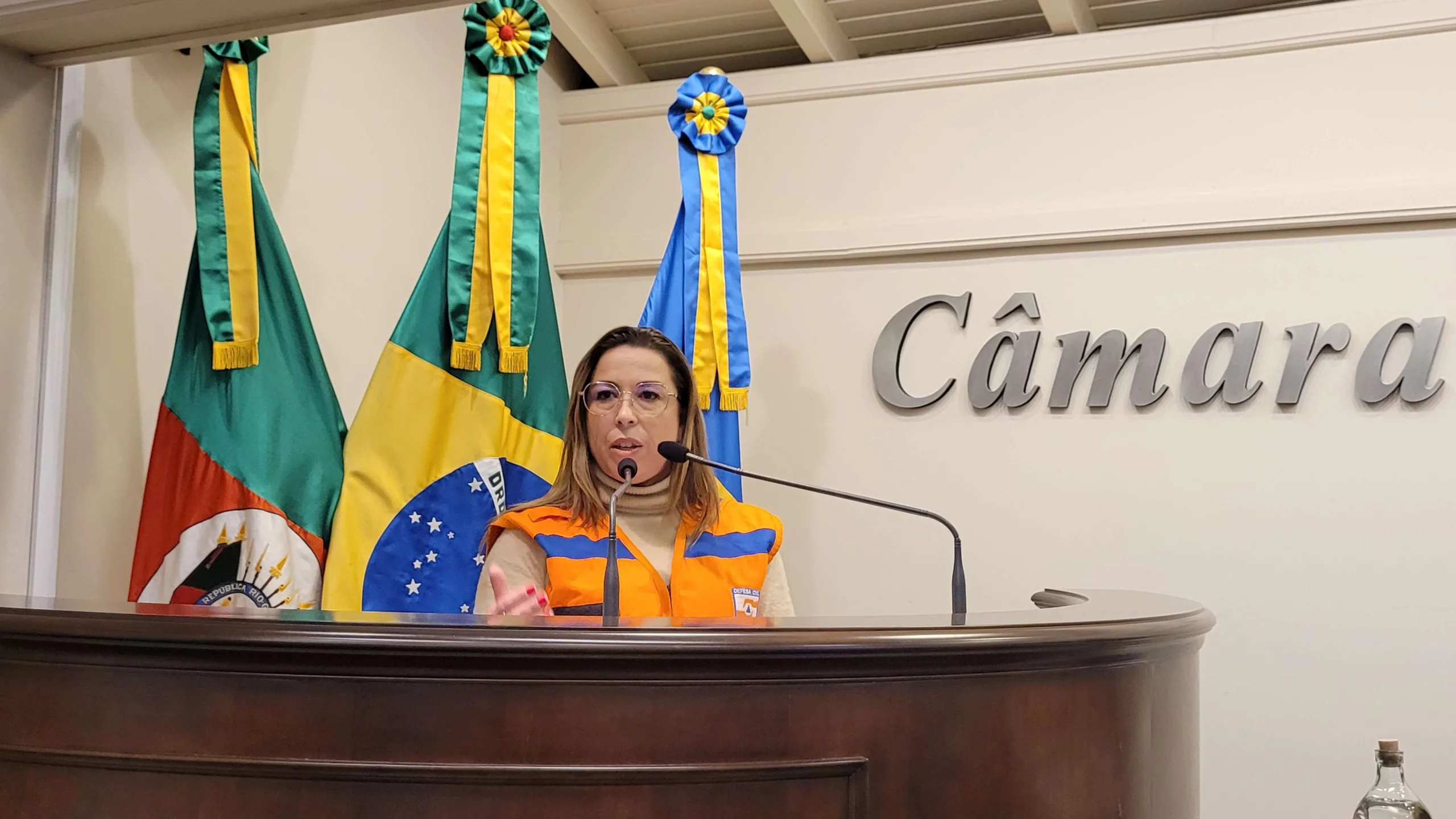 Na Tribuna do Povo, da sessão do dia 24 de junho, da Câmara de Vereadores de Gramado, a coordenadora da Defesa Civil, Juliana Fisch, fez um discurso de agradecimento e apresentou a história e as ações da Defesa Civil de Gramado.