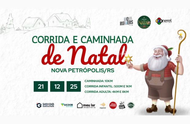 Nova Petrópolis será palco, no próximo domingo, 21 de dezembro, da Corrida e Caminhada da Magia do Natal, evento que reforça o turismo esportivo como vetor de desenvolvimento econômico e promoção do destino. A ação é uma realização da Nova Runners, com apoio da Prefeitura de Nova Petrópolis, por meio da Secretaria Municipal de Turismo e Cultura, e já soma mais de 500 inscritos, com participantes vindos de mais de 70 cidades e quatro países, evidenciando o alcance regional e internacional da iniciativa.