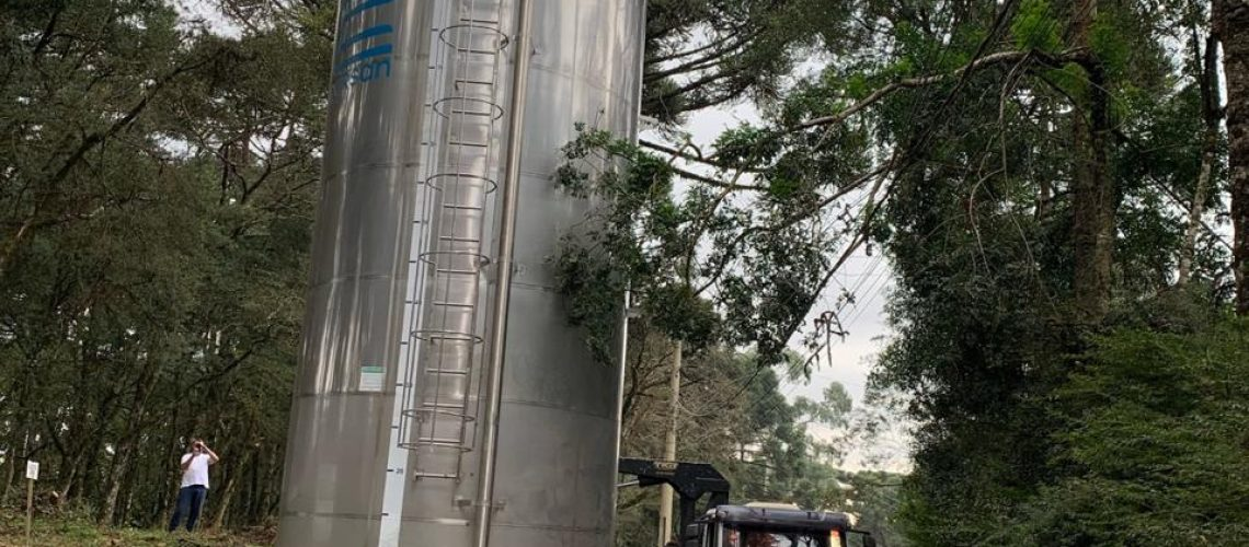 A Corsan Aegea realizou na manhã de sábado (15/06) o içamento de um reservatório de cem mil litros de água no Loteamento Edgar Haack, localizado no bairro São Luiz. Este reservatório fornecerá água potável aos moradores, que anteriormente dependiam de água de poço ou do fornecimento por caminhão-pipa da Secretaria de Obras.