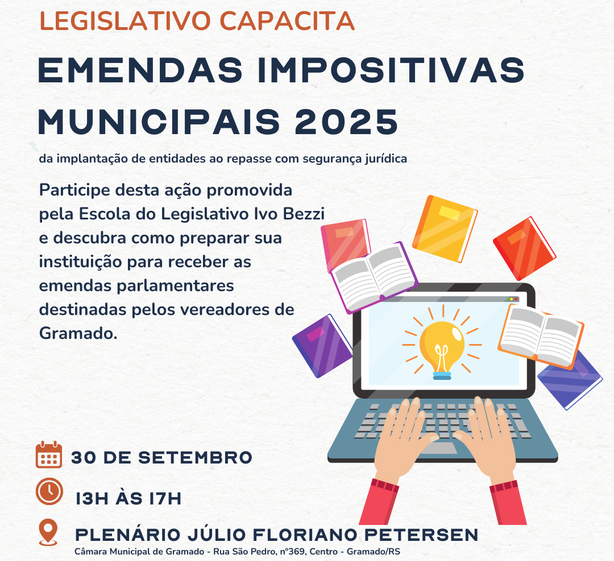 O Legislativo Capacita é um projeto da Câmara Municipal de Gramado, realizado por meio da Escola do Legislativo Ivo Bezzi, que tem como missão qualificar servidores públicos municipais — tanto do Legislativo quanto do Executivo — e, ao mesmo tempo, oferecer oportunidades de formação e cursos para toda a comunidade.