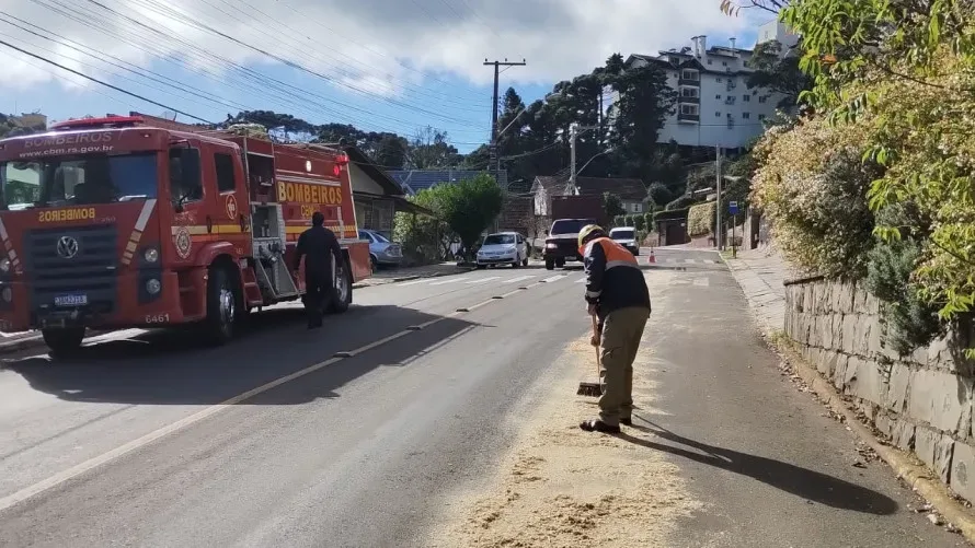 Na manhã desta quinta-feira (29), houve um vazamento de óleo sobre a pista da rua Nelson Dinnebier. A Defesa Civil, juntamente com a secretaria de Trânsito e o Corpo de Bombeiros atuaram no local para a contenção do óleo.