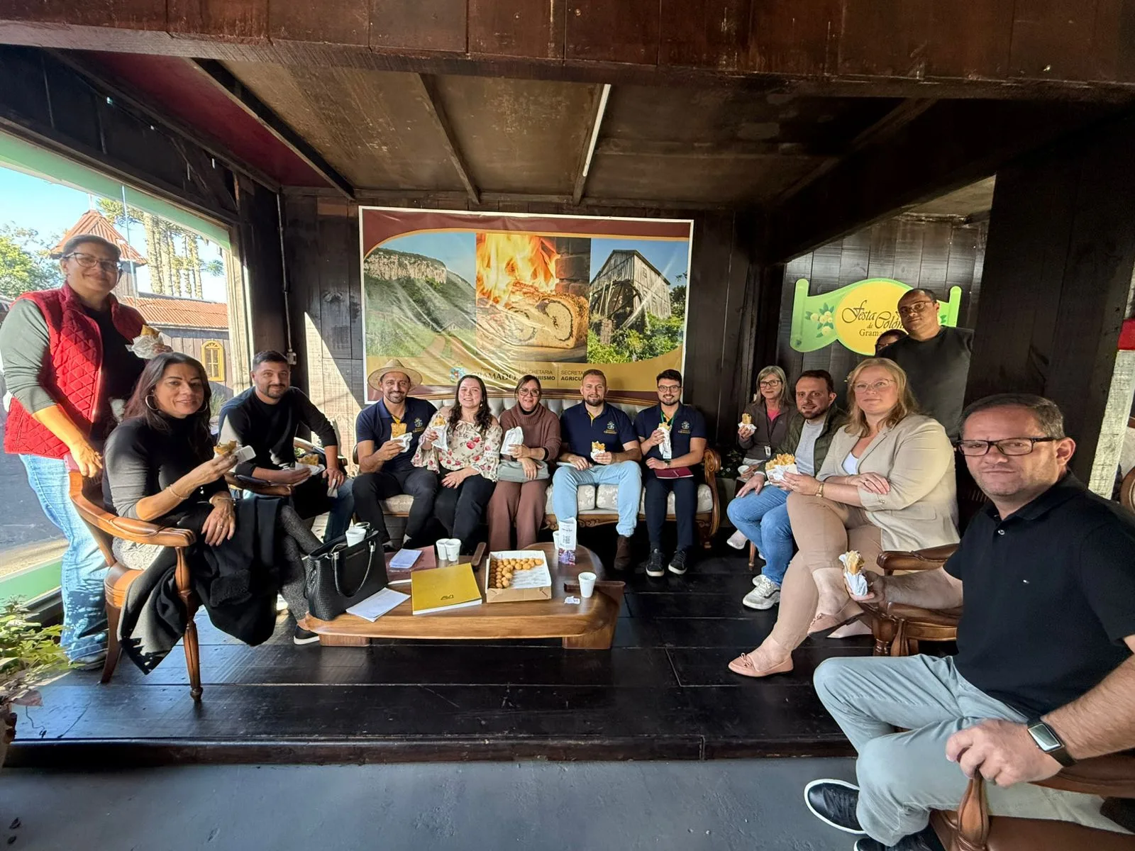 Com o objetivo de apresentar as principais ações, projetos e estratégias desenvolvidas, o secretário da Agricultura, Eliézer Lima, reuniu-se, na tarde desta terça-feira (13), com os vereadores de Gramado no espaço da Prefeitura durante a Festa da Colônia. A reunião foi uma oportunidade de diálogo direto com o Legislativo e também um momento para que os parlamentares conhecessem de perto o trabalho dos expositores da festa.