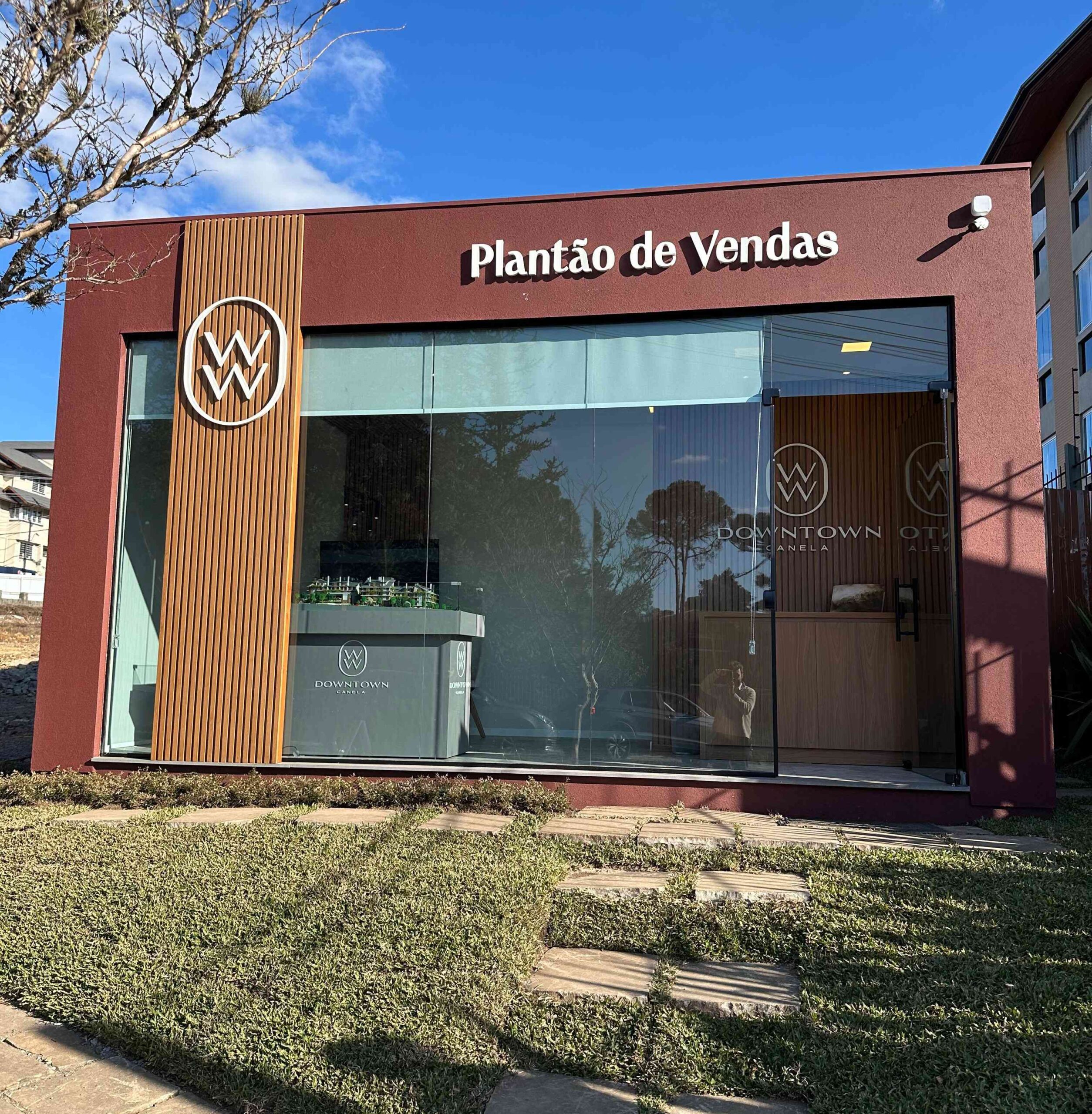 O DownTown Canela, novo empreendimento que promete transformar o centro da cidade em um moderno polo de moradia, lazer e comércio, deu mais um passo importante com a abertura oficial de seu plantão de vendas. Localizado em um ponto privilegiado, na Rua Tenente Manoel Corrêa, o espaço está de frente para o lago do Grande Hotel — uma área de rara beleza natural, mesmo estando em pleno centro urbano.