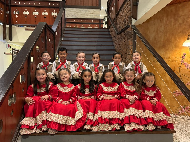 O plenário Júlio Floriano Petersen recebeu com entusiasmo o Grupo de Danças Tradicionalistas Gaúchas (DTG), da Escola Infantil Ari Dalanholi, de Canela. Com trajes típicos e muito talento, os 12 integrantes – entre peões e prendas – apresentaram danças que emocionaram o público presente, composto pelos vereadores jovens, pelos vereadores titulares Ike Koetz, Vivi Cardoso e Neri da Farmácia, além de servidores da Casa Legislativa.