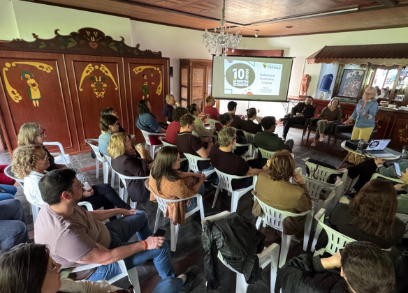 Após as apresentações, foi realizada a palestra “Economia Criativa: Transformando ideias em Impacto”. A atividade foi ministrada pelos professores doutores do programa de Pós Graduação em Indústria Criativa da Feevale, Marta Bez, Mary Ashton e Juan Almada, que abordaram temas alusivos a economia criativa, territórios criativos e suas possibilidades, e novas perspectivas a partir do plano setorial do município.