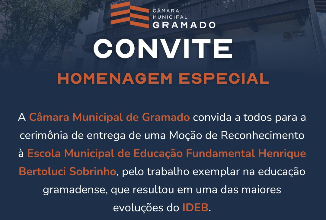 A entrega oficial da moção acontecerá na quinta-feira, dia 16, às 19h, no Teatro Elisabeth Rosenfeld, durante a cerimônia do Troféu Professor Destaque, promovido pelo Legislativo gramadense.