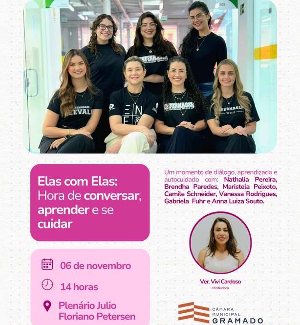 Falar sobre a sexualidade das mulheres na meia-idade ainda é, para muitas, um desafio envolto em tabus e silêncios. No entanto, esse é um tema que vem ganhando espaço e reconhecimento, especialmente por sua importância para o bem-estar físico e emocional das mulheres. Com esse olhar sensível e educativo, a Câmara Municipal de Gramado, por meio do gabinete da vereadora Vivi Cardoso, realiza o painel “Elas com Ela: Hora de conversar, aprender e se cuidar”, em parceria com a equipe de Enfermagem da Universidade Feevale.