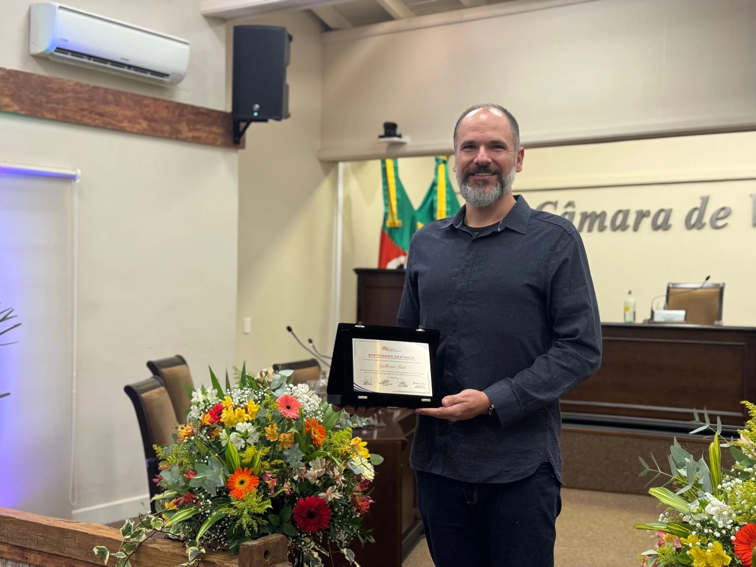Neste ano, por indicação do vereador Rafael Ronsoni (Progressistas), o homenageado foi o empresário Guilherme Tissot, proprietário da Tissot Móveis — empresa fundada em 2003, reconhecida nacionalmente pela excelência, design exclusivo e qualidade na produção de móveis. Com mais de duas décadas de atuação, a marca se consolidou como referência no setor moveleiro e se tornou símbolo de inovação e compromisso com a cidade.