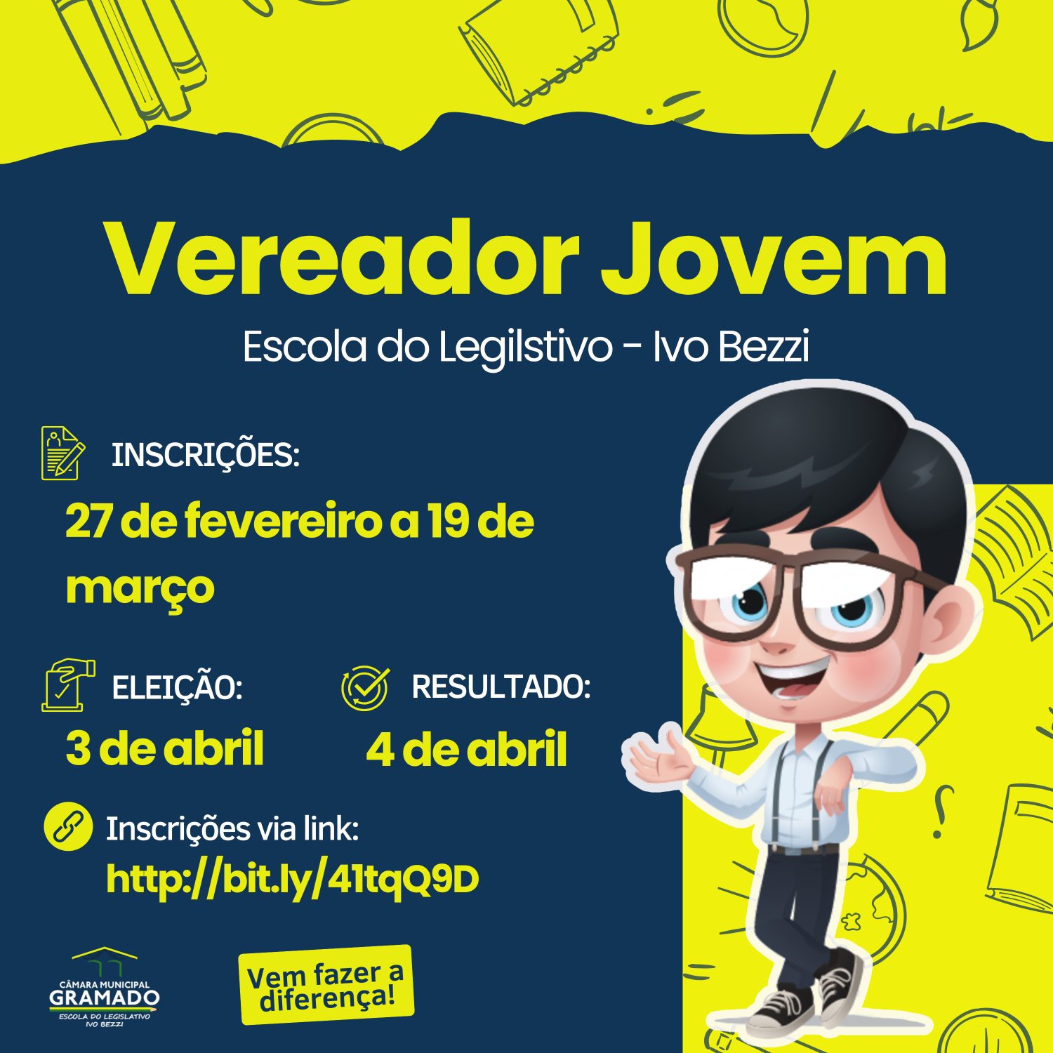 Você já pensou em fazer a diferença na comunidade onde vive? Seja na sua escola, rua, bairro ou cidade? Então chegou a hora de tirar suas ideias do papel e colocá-las em prática. Um novo Parlamento Jovem está prestes a começar na Câmara de Gramado!