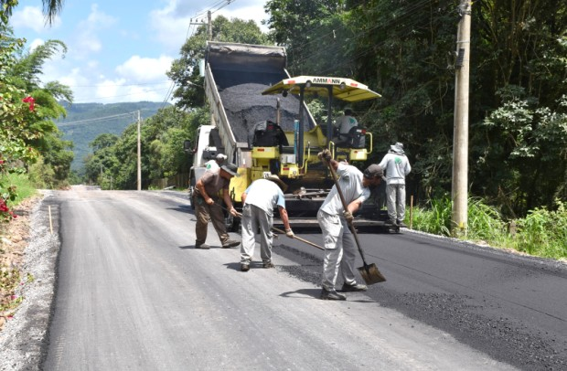 Estão sendo concluídas nesta semana as primeiras aplicações asfálticas na Estrada Rio Caí, em São José do Caí, no interior de Nova Petrópolis. O trecho que está sendo finalizado totaliza 2.420 metros, da Ponte da Cooperação até próximo da Igreja Evangélica. A obra, que no total tem 2.828 metros, até a BR-116, representa um investimento de R$ 3.814.673,82, custeado pelo Governo do Estado, através do programa Avançar – Pavimenta RS, com contrapartida do Município de Nova Petrópolis, financiada pelo Badesul.