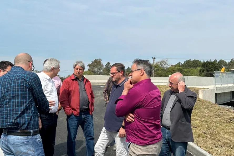 A obra de construção do viaduto da ERS-115, na Várzea Grande, está próxima de ser concluída. Na última sexta-feira (01) o prefeito Nestor Tissot, o deputado estadual Joel Leandro Wilhelm, o subprefeito de Várzea Grande, Carlos Alexandre Foss, o secretário de Obras Rafael Ronsoni e os vereadores Rosi Ecker Schmitt, Joel Reis e Neri da Farmácia se reuniram com o diretor-presidente da Empresa Gaúcha de Rodovias (EGR), Luiz Fernando Záchia e o diretor-técnico, Luis Fernando Vanacor, no local da obra.