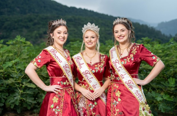 As soberanas da 50ª Festa do Figo, rainha Caroline Fenner e princesas Cristiele Amanda Reisdoerfer e Nicoli Maiara Oberherr, estarão recebendo o público durante a festa, celebrando a cultura e a tradição do evento, além de compartilhar momentos especiais com os visitantes e participar das diversas atrações.