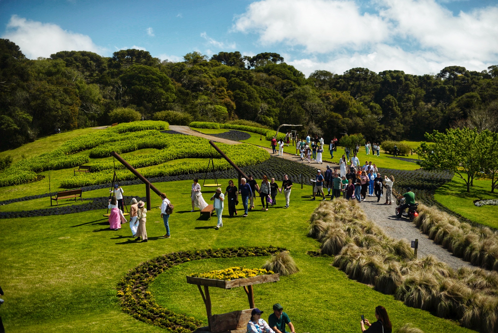 O almoço no túnel de Glicínias surpreendeu o público com música ao vivo, mesas decoradas e lugares marcados sob um céu de Glicínias lilás. Arika Messa, chef de Cozinha da Monã, de Canela, serviu tortei com flores e Marcos Livi, Stinco de Cordeiro, acompanhado de mil folhas de batata. Os pratos foram harmonizados com vinhos Jolimont.