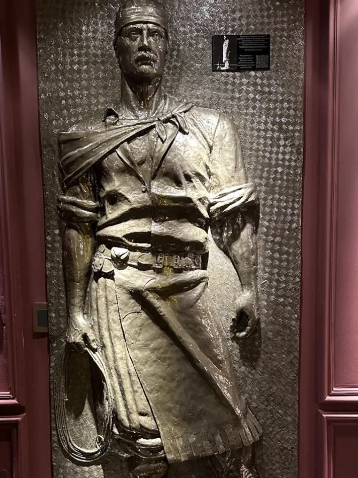 A escultura de o Laçador complementa a decoração da Chama de Fogo, que leva a assinatura do designer de interiores Maico Zimmer, com parceria da arquiteta Larissa Braum. Reinaugurada no final de março, o retrofit da churrascaria recebeu R$ 5,5 milhões de investimento, saltando dos antigos 429 m² para 800 m², e ampliando sua capacidade de 150 para 200 pessoas.