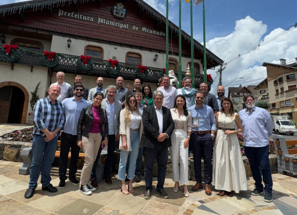 A Prefeitura de Gramado sediou um importante encontro na manhã desta quinta-feira (7), dentro da programação do Festuris 2024, onde recebeu a visita de uma comitiva da cidade de Campos do Jordão (SP), composta por empresários e autoridades. A reunião foi idealizada pela empresária Marta Rossi e contou com a presença do prefeito Nestor Tissot, do vice-prefeito Luia Barbacovi, do secretário de Turismo, Ricardo Bertolucci Reginato, da presidente da Gramadotur, Rosa Helena Volk, do secretário de Turismo de Campos do Jordão, André Barbedo, do presidente do Comtur – Conselho Municipal de Turismo da cidade serrana paulista, Sidney Isidro, além de empresários e representantes de entidades do trade turístico gramadense.