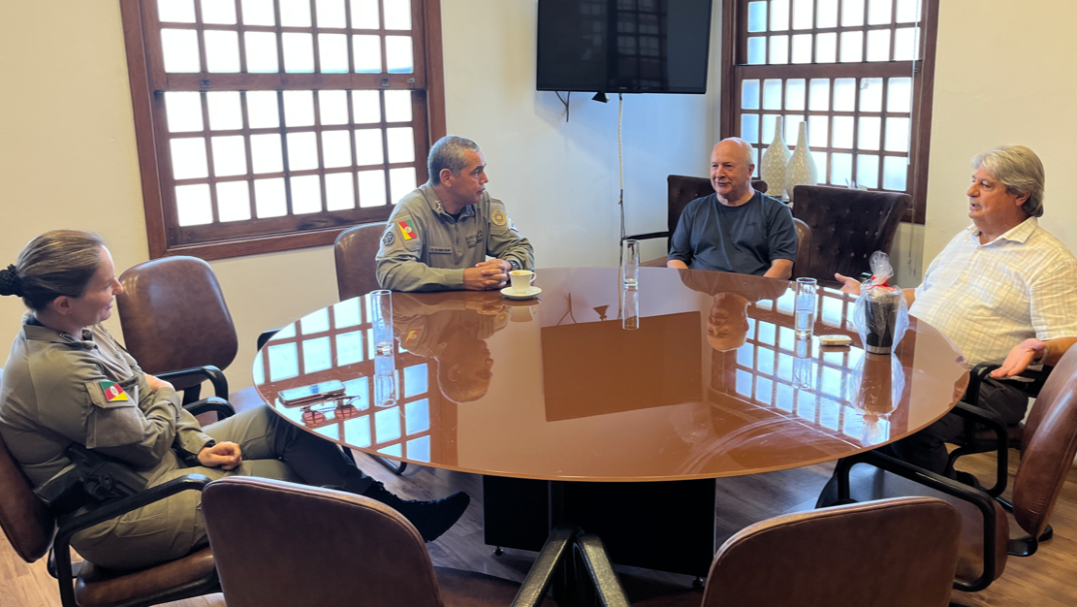 Na manhã desta terça-feira (13), o prefeito Nestor Tissot e o vice-prefeito Luia Barbacovi receberam no gabinete o comandante do Comando Regional de Polícia Ostensiva Hortênsias (CRPO-H), Coronel Ivens Giuliano dos Santos, acompanhado da subcomandante do 1º Batalhão de Policiamento em Áreas Turísticas (1º BPAT), Major Maldaner. O encontro teve como objetivo a apresentação dos dados da segurança pública de Gramado em 2025 e o fortalecimento da parceria entre o Executivo Municipal e a Brigada Militar.