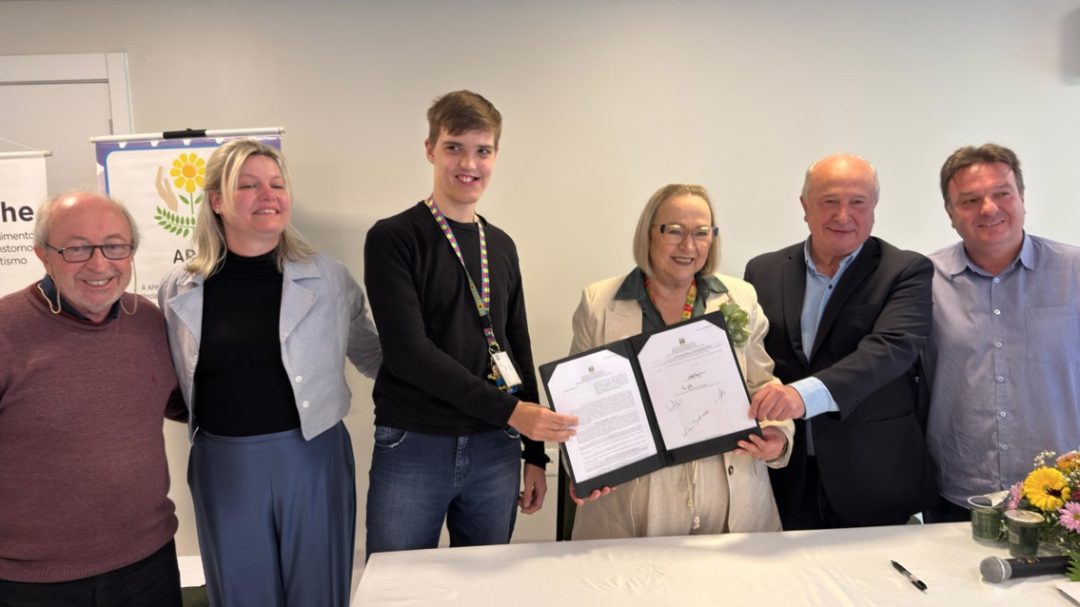 Gramado passa a contar com um novo Centro de Atendimento em Saúde (CAS) voltado ao cuidado de pessoas com Transtorno do Espectro Autista (TEA). Nesta quinta-feira (9), foi assinado o contrato entre a Secretaria Estadual da Saúde (SES) e a Associação de Pais e Amigos dos Excepcionais (APAE) de Gramado, oficializando a implantação do CAS TEAcolhe no município. A cerimônia contou com a presença da secretária de Estado da Saúde, Arita Bergmann, do prefeito em exercício de Gramado, Luia Barbacovi, do presidente da APAE, Ilton Müller, do secretário municipal da Saúde, Jeferson Moschen, e de outras autoridades.