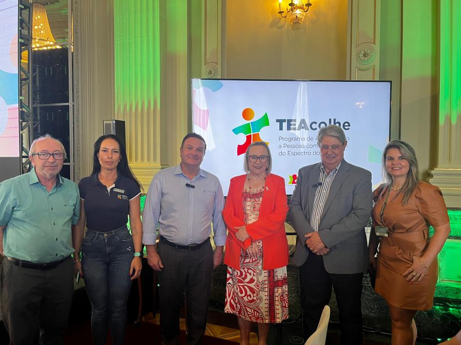 Na última segunda-feira (05), o prefeito Nestor Tissot, o secretário da Saúde Jeferson Moschen, a coordenadora da saúde mental de Gramado Katiane Reis e o presidente e a coordenadora da APAE Gramado, Ilton Muller e Juliane Zalamena, estiveram no Palácio Piratini onde prestigiaram o ato de assinatura das portarias e convênios que viabilizam a ampliação do Programa TEAcolhe.