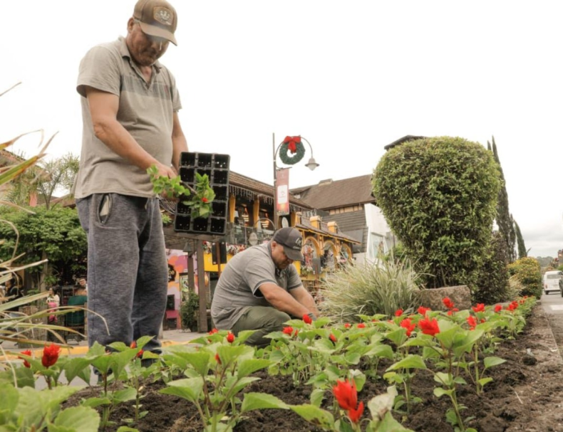 Conforme o técnico agrícola do Horto Municipal, Márcio Pottratz, foram cultivadas 450 mil mudas de flores, como alegria-de-jardim-vermelhas, dálias, margaridas, petúnias, cravinas, impatiens, tagetes e outras espécies. Pottratz destaca que a escolha das cores está alinhada com a decoração temática do evento. “Buscamos manter o equilíbrio e a harmonia com a decoração urbana. O plantio está sendo realizado nos canteiros das principais ruas, praças e pórticos”, afirma.
