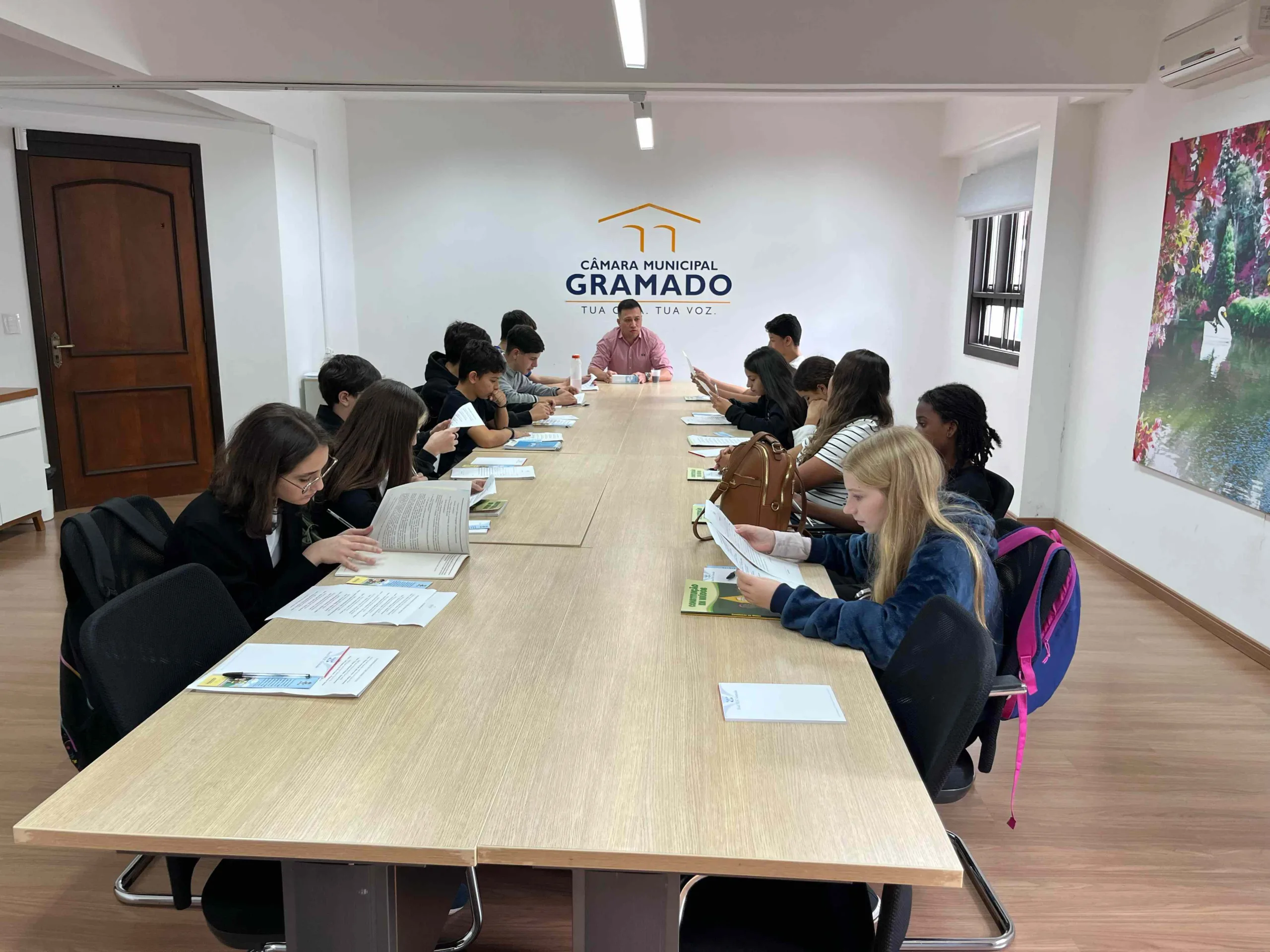 Os vereadores jovens eleitos para o ano de 2025 já estão trazendo mais vida e energia à Câmara de Gramado. Nesta semana, eles participaram de um encontro preparatório conduzido pelo diretor da Escola do Legislativo, Fábio Schmatz, que antecede a cerimônia de diplomação marcada para o dia 5 de maio, às 18h, durante a sessão ordinária.