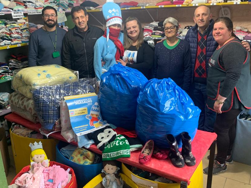 A equipe responsável pela Campanha do Agasalho 2023, liderada pelo secretário da Cidadania Ilton Gomes e pelos servidores Márcia Pimel e Marzone Wagner, se reuniu com o mascote Zé Touquinha e demais servidores da Secretaria da Cidadania e Assistência Social para o encerramento da campanha deste ano, que contabilizou 9.442 peças de doações durante o mês de junho.