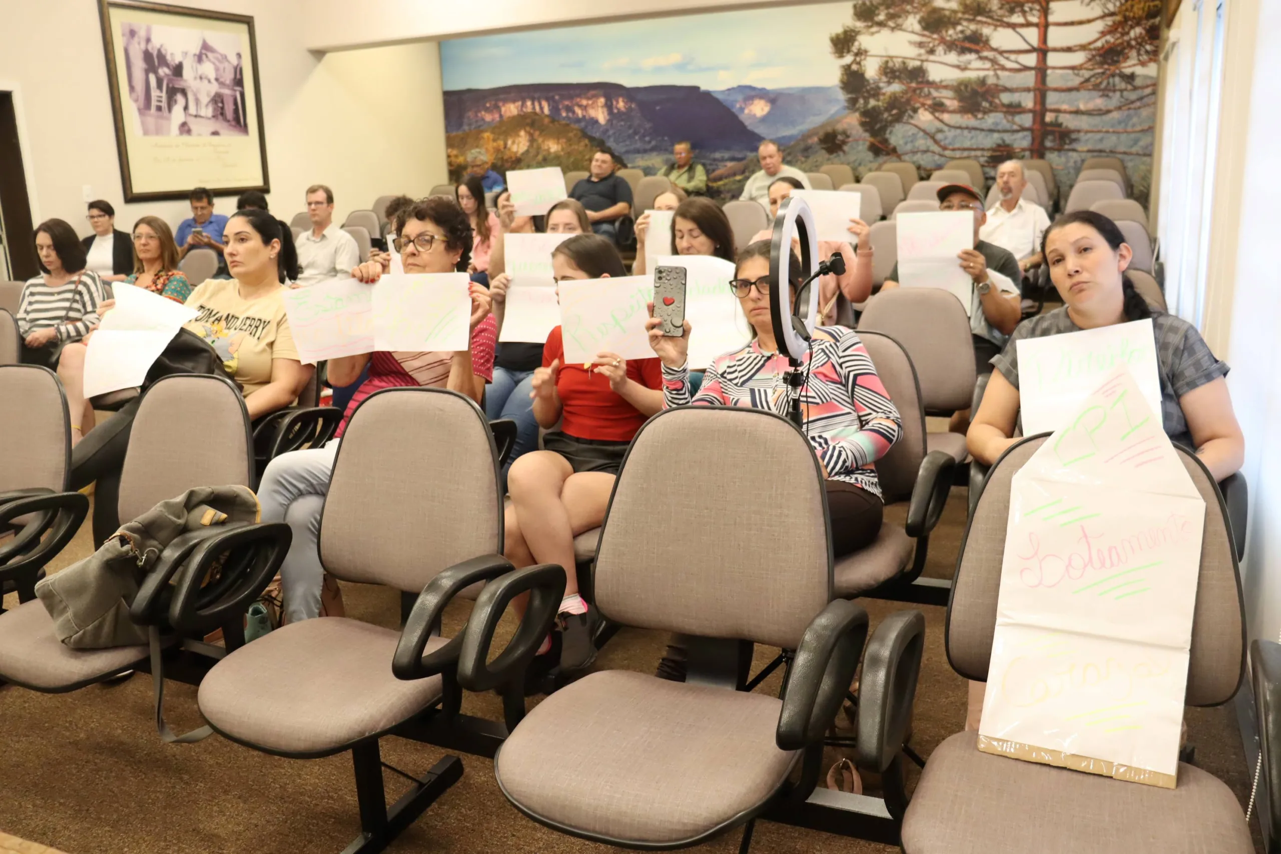 Além do espaço da Tribuna do Povo, pessoas da comunidade acompanharam a sessão e trouxeram cartazes pedindo atenção à temática com dizeres como: “Respeito”, “Estamos na fila” e “Não queremos de graça”.