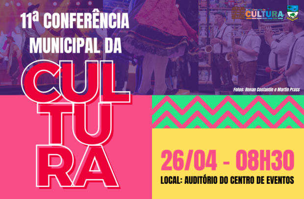 A Prefeitura de Nova Petrópolis, por meio do Conselho Municipal de Políticas Públicas Culturais e do Departamento Municipal de Cultura, realizará, no dia 26 de abril, a 11ª Conferência Municipal de Cultura. Com o tema “A união da nossa cultura”, o encontro ocorre das 8h30 às 11h, no auditório do Centro de Eventos de Nova Petrópolis. A atividade é aberta ao público, voltada a agentes culturais e representantes de entidades, como grupos de danças, coros, orquestras, sociedades e associações do Município. Entidades e pessoas com cadastro de agente cultural podem se inscrever previamente através do link https://forms.gle/x9we5RnBTBeL74HGA ou presencialmente no evento.